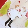 Invitatie de nunta comica confectionata dintr-un carton lucios, cu decupaj in forma de inima si snur de culoare bordo.